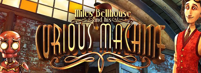 The Curious Machine captivates with its stunning 3D graphics and immersive steampunk aesthetic. The reels are set against an inventor's workshop filled with gears, valves, and mysterious contraptions. Miles Bellhouse, the game's quirky protagonist, watches eagerly as you spin the reels of his time-traveling machine.